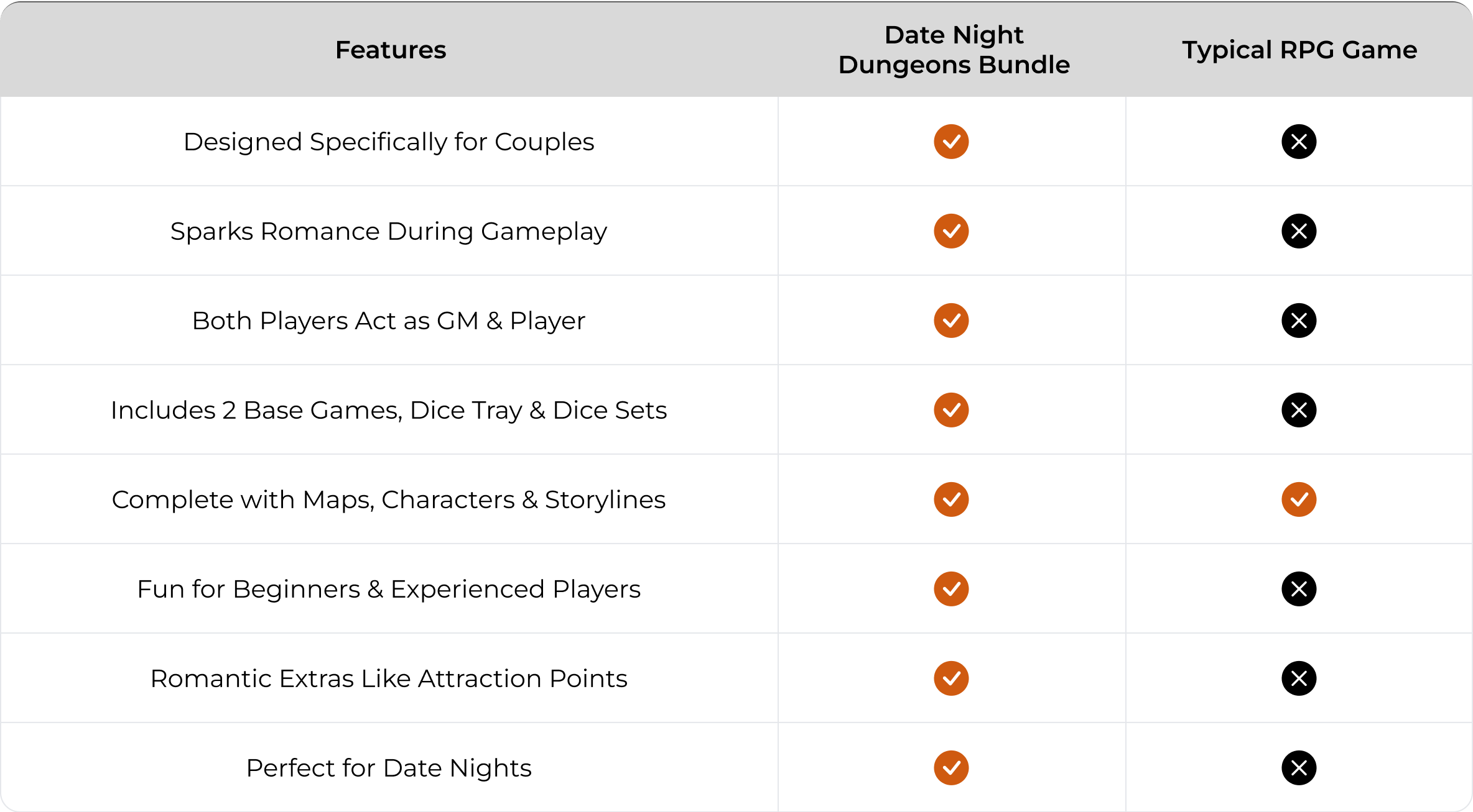 Compare Date Night Dungeons with typical RPG games and see why couples love it.