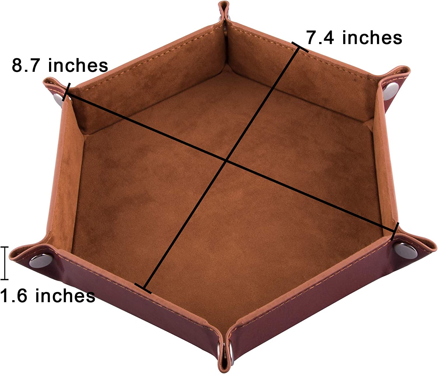 - Wide application - the dimension of the hexgon dice tray as the picture show, large enough space to hold your polyhedral dice, and the dice tray also practical to hold many other items, such as watches, jewelry, keys, coins, and candies etc., so pratical for you