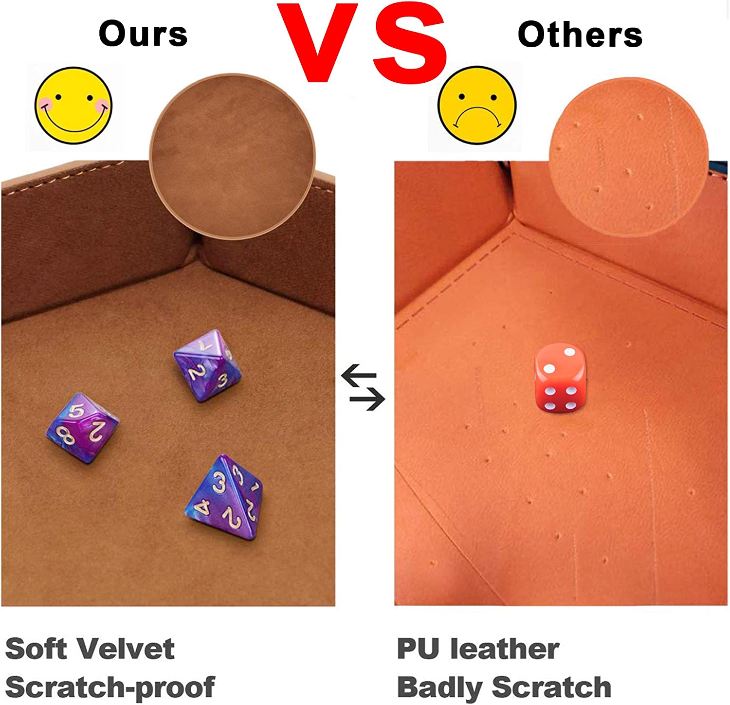 - Durable and sturdy - the lining of the dice tray made of soft velvet, which can protect the dice tray from scratching by sharped or metal dices, the outer surface of the dice tray made of fully PU leather, which with great touchfeel and easy to clean